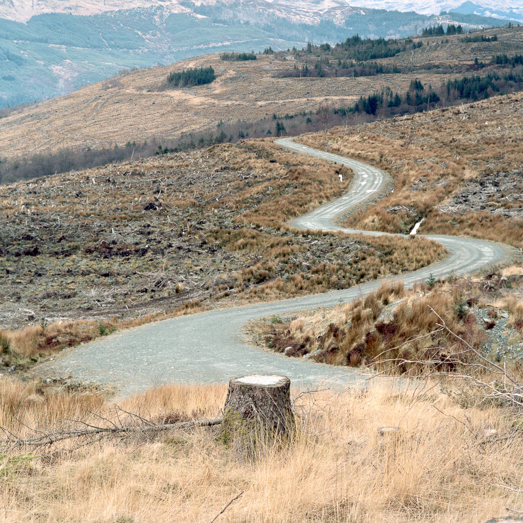 What was once a walk through woodland has transformed. The trees have all been felled and removed. A woodland walk is now a path across bare exposed hill. The path in question makes it way through privately owned forestry land which has recently matured. The land looks devastated. It is strewn with the debris and stumps from the recent forestry work. If you can look past the wasteland though there are now views of the river Clyde and surrounding hills that were once blocked by the monoculture of spruce…