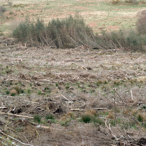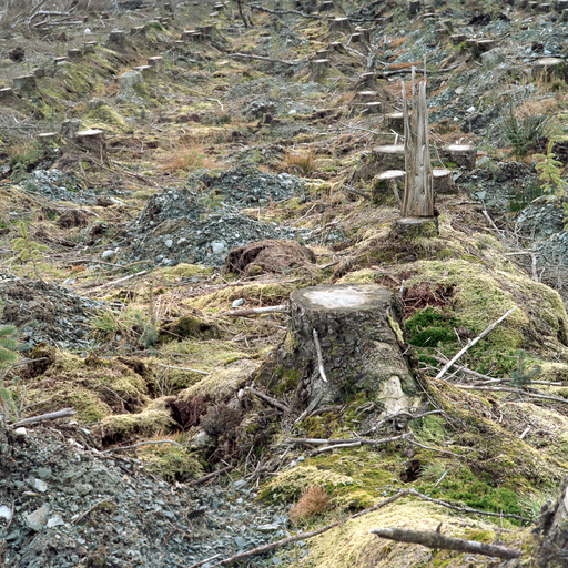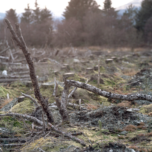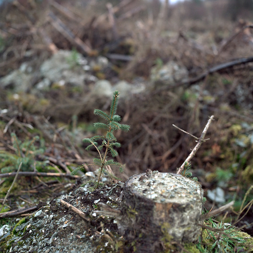 What was once a walk through woodland has transformed. The trees have all been felled and removed. A woodland walk is now a path across bare exposed hill. The path in question makes it way through privately owned forestry land which has recently matured. The land looks devastated. It is strewn with the debris and stumps from the recent forestry work. If you can look past the wasteland though there are now views of the river Clyde and surrounding hills that were once blocked by the monoculture of spruce trees. Otherwise look closely at the wasteland and you will be able to see the next generation of trees, the cycle begins again and eventually the woodland will return.